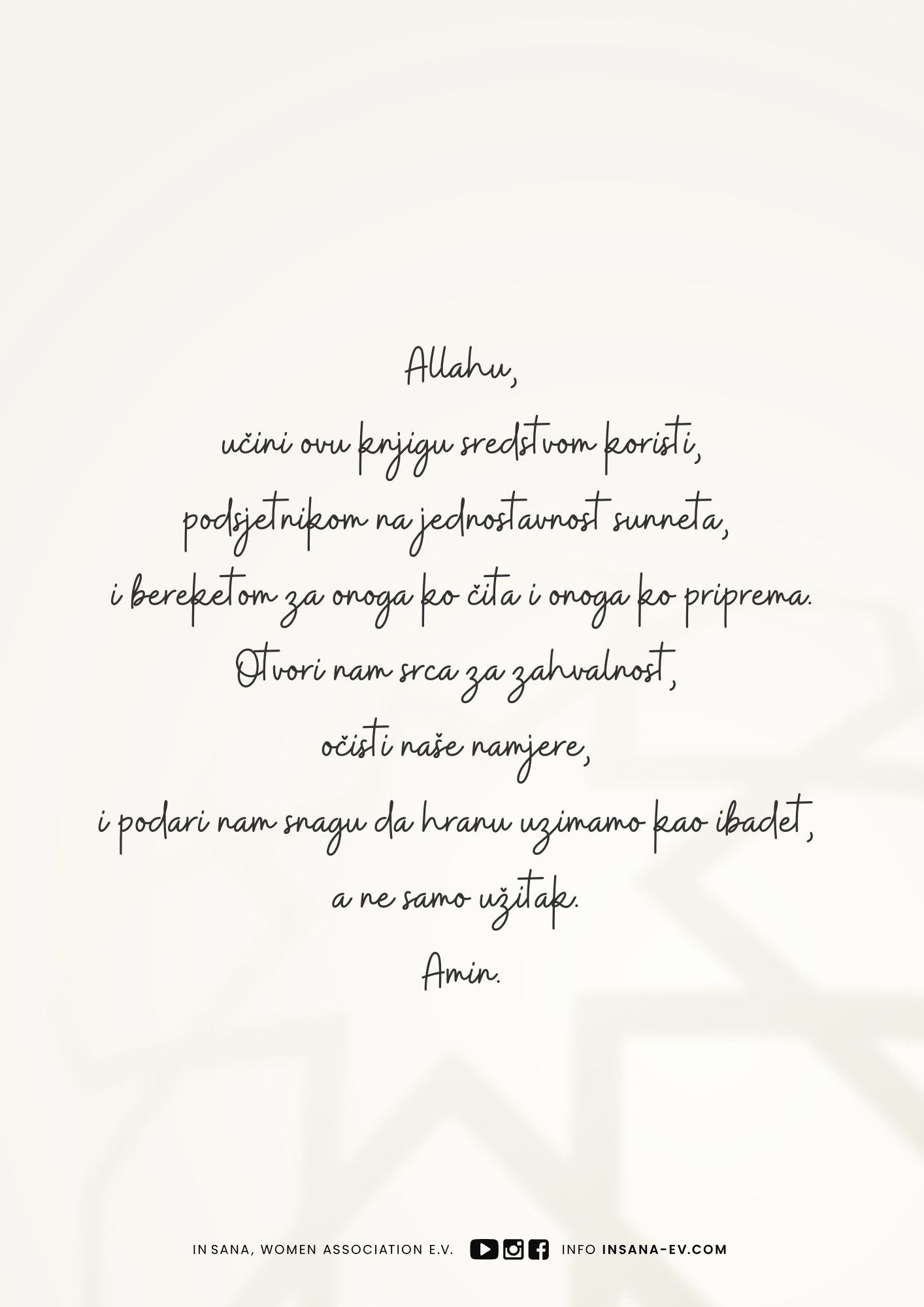 Dieses Buch ist aktuell nur in bosnischer Sprache verfügbar und kostenlos. Als gemeinnütziger Verein freuen wir uns jedoch über jede Spende, um vielleicht in Zukunft dieses oder andere Projekte auch in gedruckter Form anbieten zu können und zu