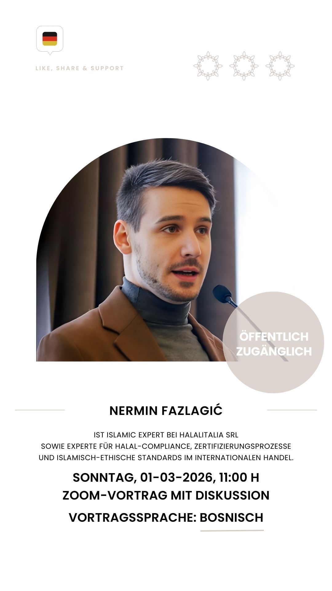 Der Vortrag beleuchtet das Konzept von Halal, das weit über das rituelle Schlachten hinausgeht und zahlreiche weitere Bereiche umfasst: agrar- und lebensmittelbezogene Produkte, Kosmetik, pharmazeutische Erzeugnisse, Logistik und vieles mehr.