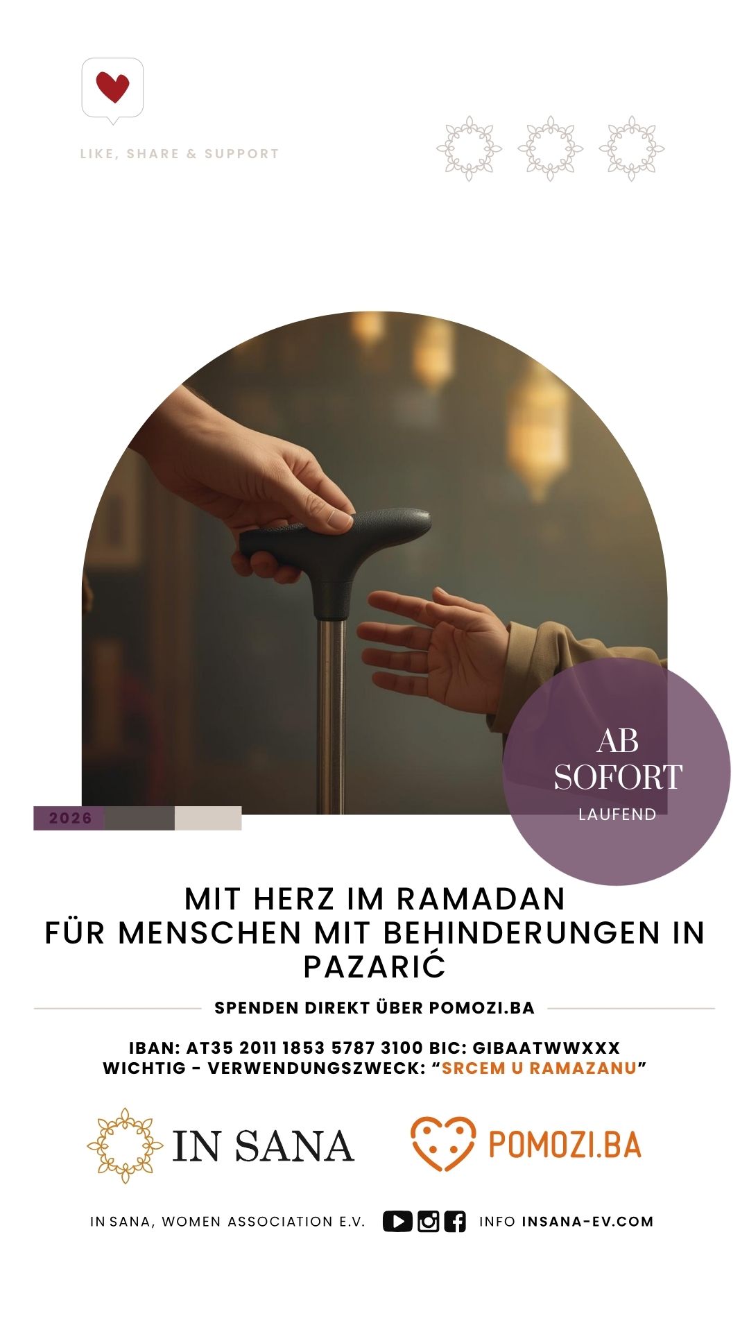 Während des Ramadans 2026 möchten wir gemeinsam den notleidenden Menschen in der Behinderteneinrichtung Pazarić mit dringend benötigten Sachspenden helfen, ein menschenwürdiges Leben zu führen.